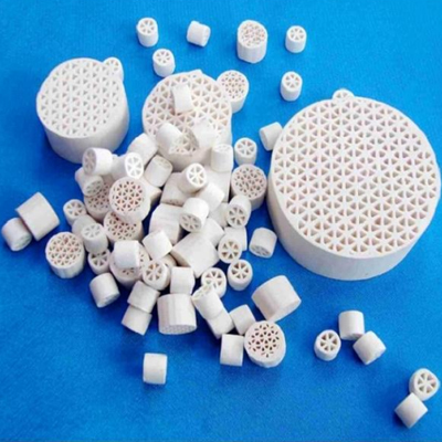 鳥巢支撐劑主要由AL?O?加高嶺土球磨制成粉,經捏合機加入CMC攪拌后擠注、切割、燒結成型。具有較高的空隙率,能很好的吸附床層中的污垢,更好的氣液分布。