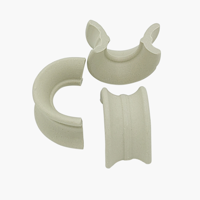 陶瓷矩鞍環(huán)的形狀介于環(huán)形與鞍形之間,因而兼有兩者之優(yōu)點。其填料床層具有較大的空隙率,床層內(nèi)多為圓弧形液體通道,減少了氣體通過床層的阻力,也使液體向下流動時的徑向擴散系數(shù)減小。