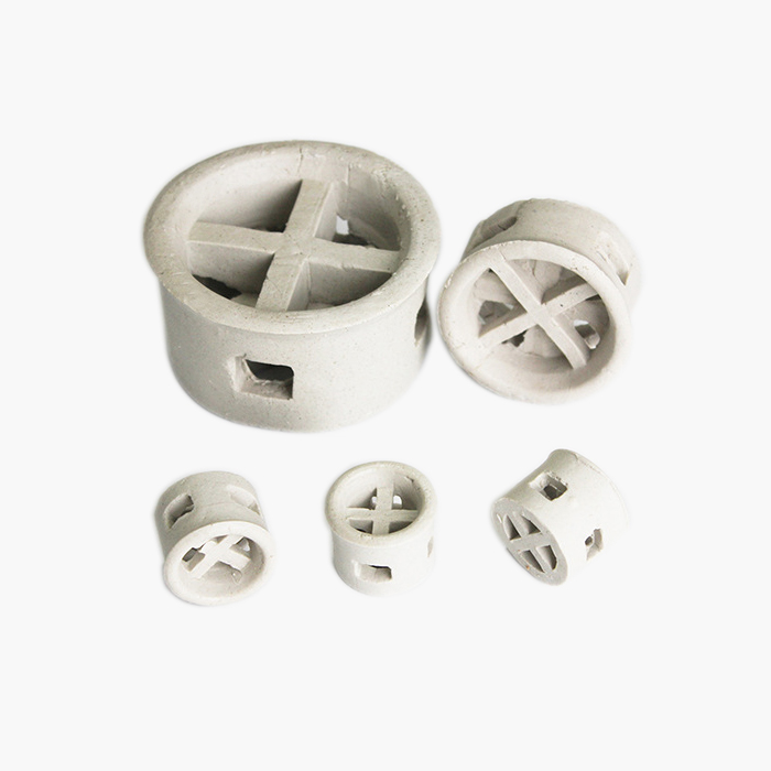 陶瓷階梯環(huán)吸收了短拉西環(huán)的特點,也改變了填料的環(huán)高與直徑相等的習慣,降低了環(huán)的高度,減薄了材質的厚度,并在環(huán)的側端增加了翻邊。