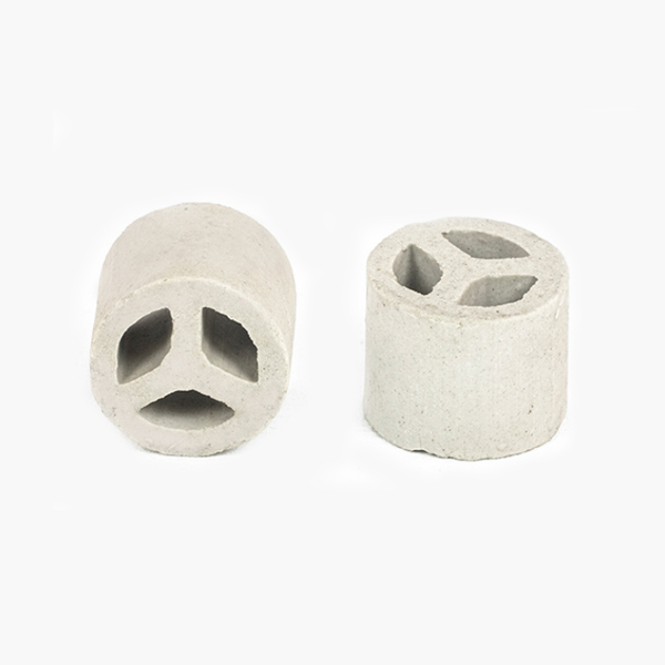 陶瓷三丫環(huán)填料是一種經(jīng)外觀獨特設計加工成的一種新型高效散堆填料,產(chǎn)品高徑比約為2:1,內(nèi)部設有一個或三個“Y”型隔板,這樣增大比表面積,提高了汽液分散性能,使汽液接觸更充分。三丫環(huán)填料是從階梯環(huán)、共鉅環(huán)、扁環(huán)、矩鞍環(huán)的基礎上以及在形狀、外觀和結構綜合考慮,進行取長補短而改進的。