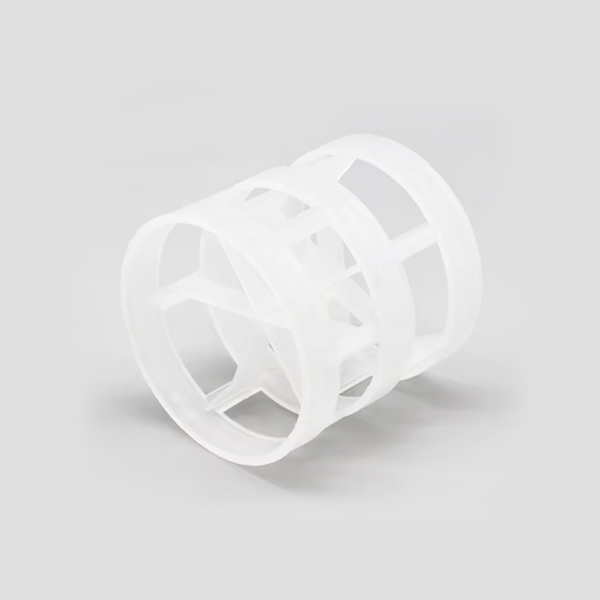塑料鮑爾環(huán)填料是一種高徑相等的開孔環(huán)型填料,每層窗孔有5個舌葉,每個舌葉內(nèi)彎指向環(huán)心,上下兩層窗孔的位置相反錯開,一般開孔面積約占環(huán)壁總面積的30%左右。這種結(jié)構(gòu)改善了汽液分布,充分利用了環(huán)的內(nèi)表面,從而使得填料塔內(nèi)的氣體和液體能夠從窗體自由通過。
